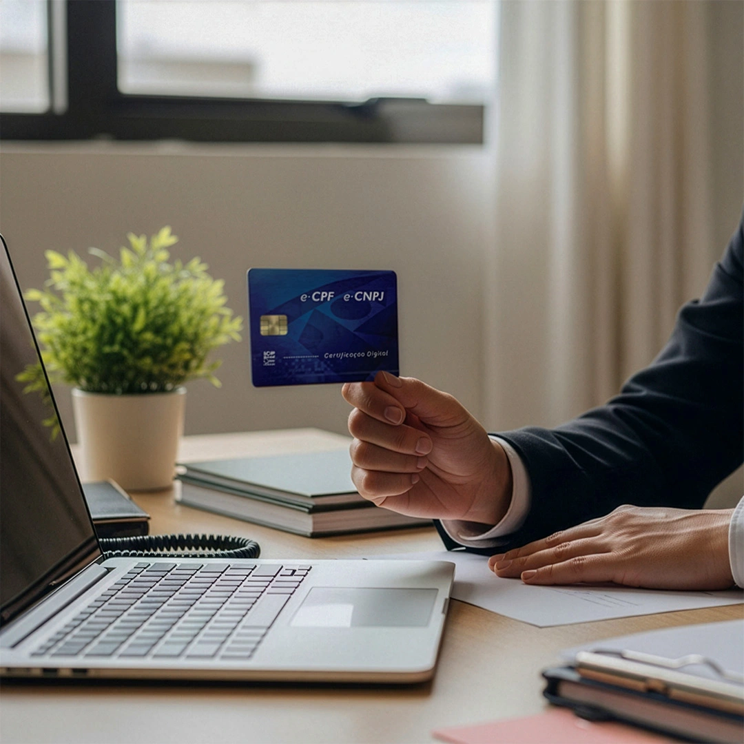 O certificado digital é uma identidade eletrônica que permite assinar documentos online, acessar sistemas do governo, emitir notas fiscais e cumprir obrigações fiscais com segurança. Emitimos e renovamos os modelos A1 e A3, garantindo praticidade e evitando bloqueios ou atrasos nas suas operações.